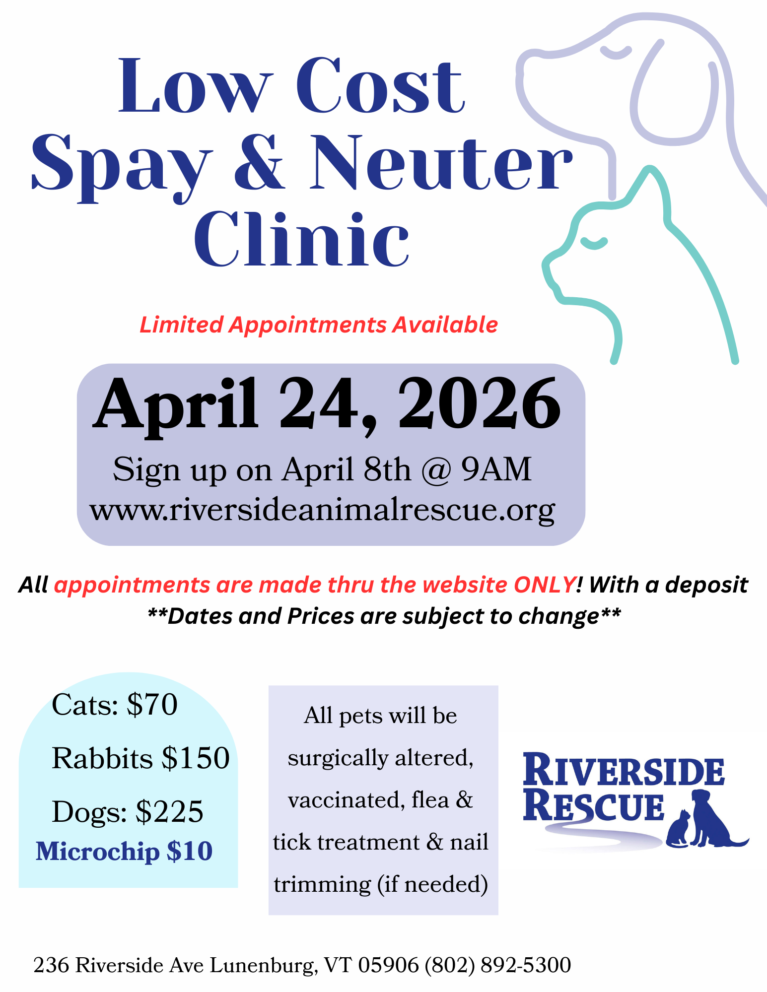 Please understand there will be limited dog appointments, we do hope to add some dog only clinic days.